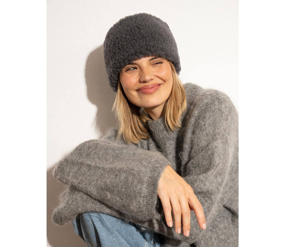 100 % Wolle in einem Fleece mit Schaffellstruktur und einer sehr leichten Formel. Der Stoff zeichnet sich durch außergewöhnliche Weichheit und Elastizität aus, wodurch er uns sanft umhüllt. Charakteristisch für dieses Material ist seine schwarze Basis, die die Farbe des verwendeten Wollvlieses intensiv zur Geltung bringt.