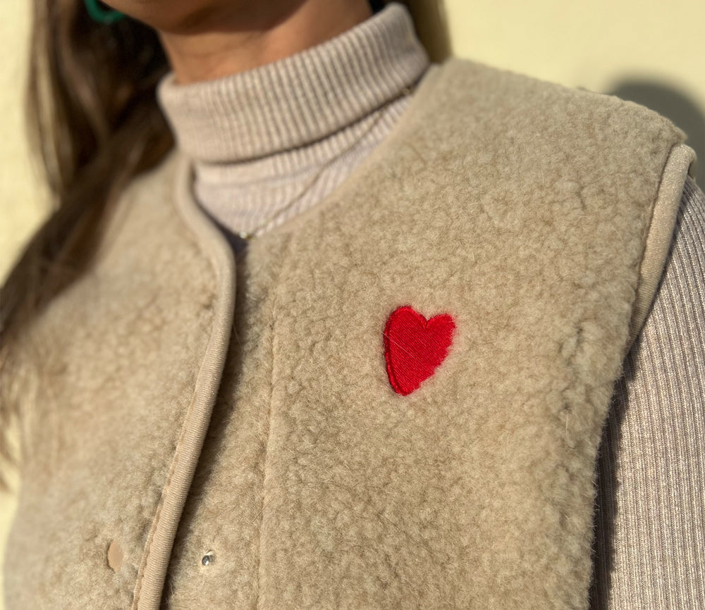Alwero - Bodywarmer "TYB" ADULT, Biowolle, Sandy Brown mit HERZ, ultra light, SPECIAL EDITION