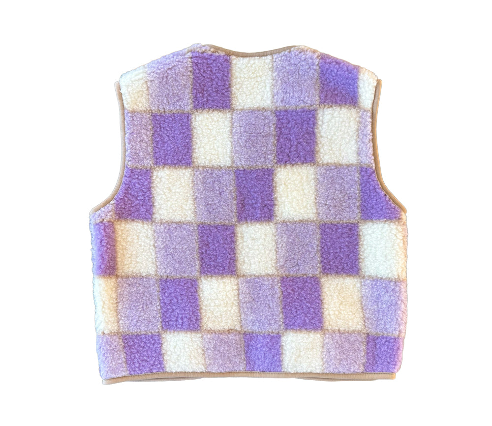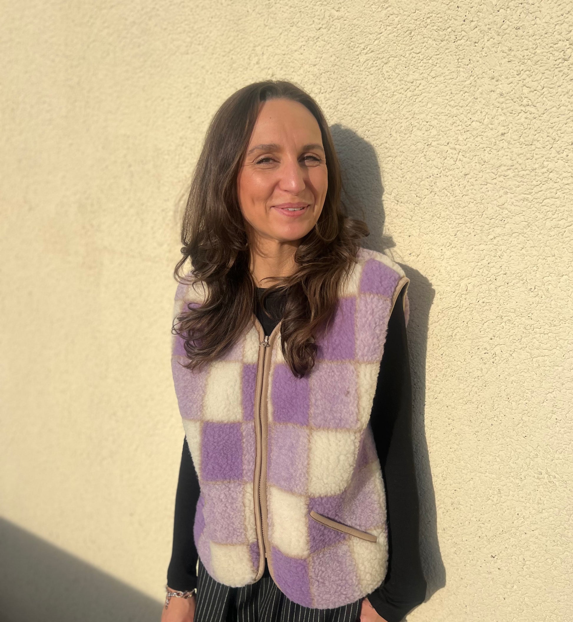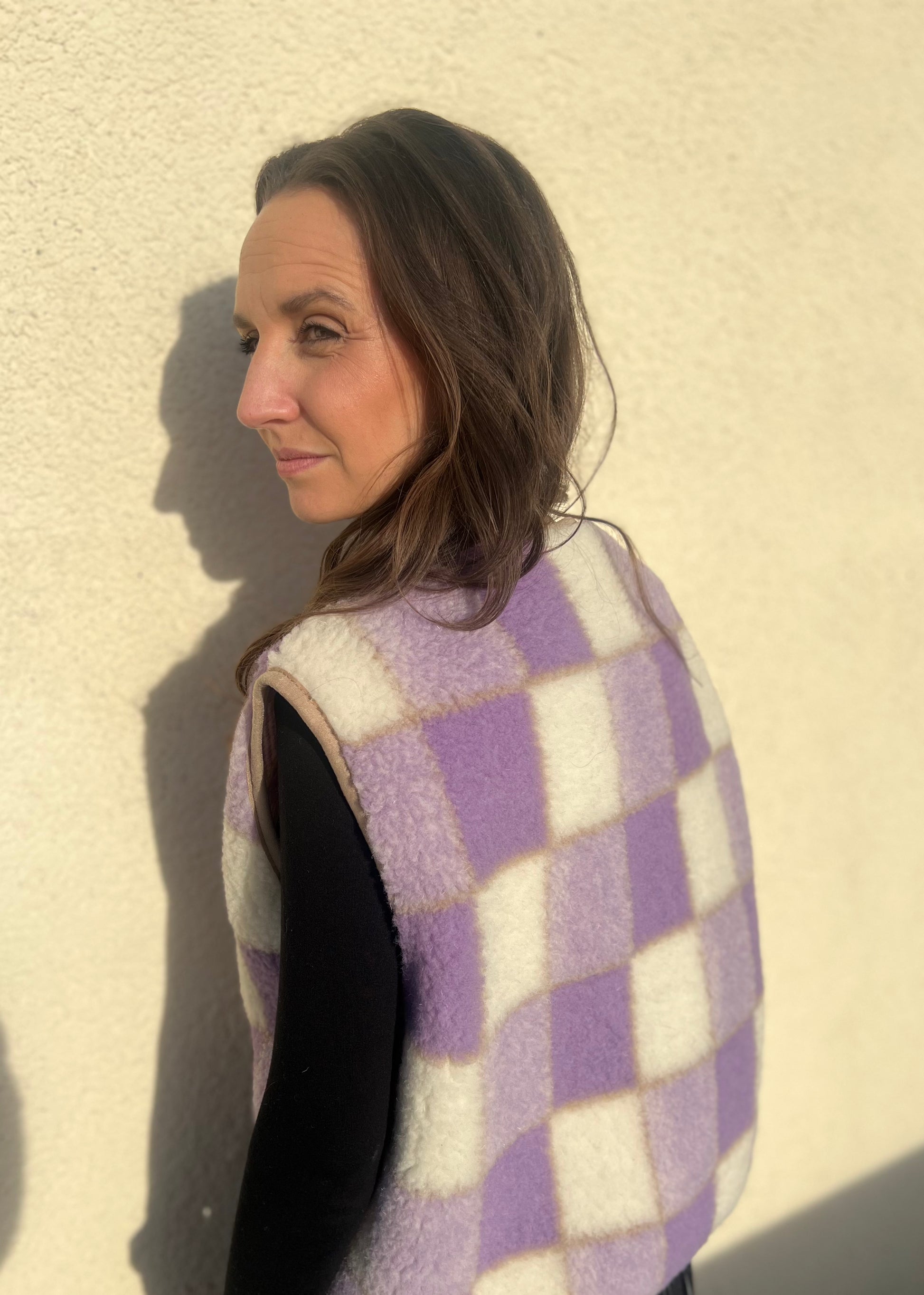 Alwero - Weste "POS" Adult, Biowolle, LILA CHECKERED, ultra light