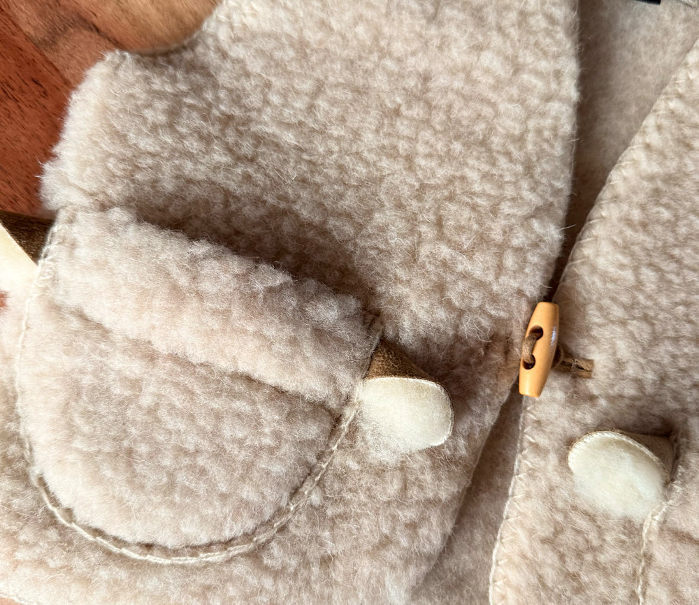 - ULTRALEICHTE WOLLE 100 % Wolle in einem Fleece mit Schaffellstruktur und einer sehr leichten Formel. Der Stoff zeichnet sich durch außergewöhnliche Weichheit und Elastizität aus, wodurch er uns sanft umhüllt. Charakteristisch für dieses Material ist seine schwarze Basis, die die Farbe des verwendeten Wollvlieses intensiv zur Geltung bringt.