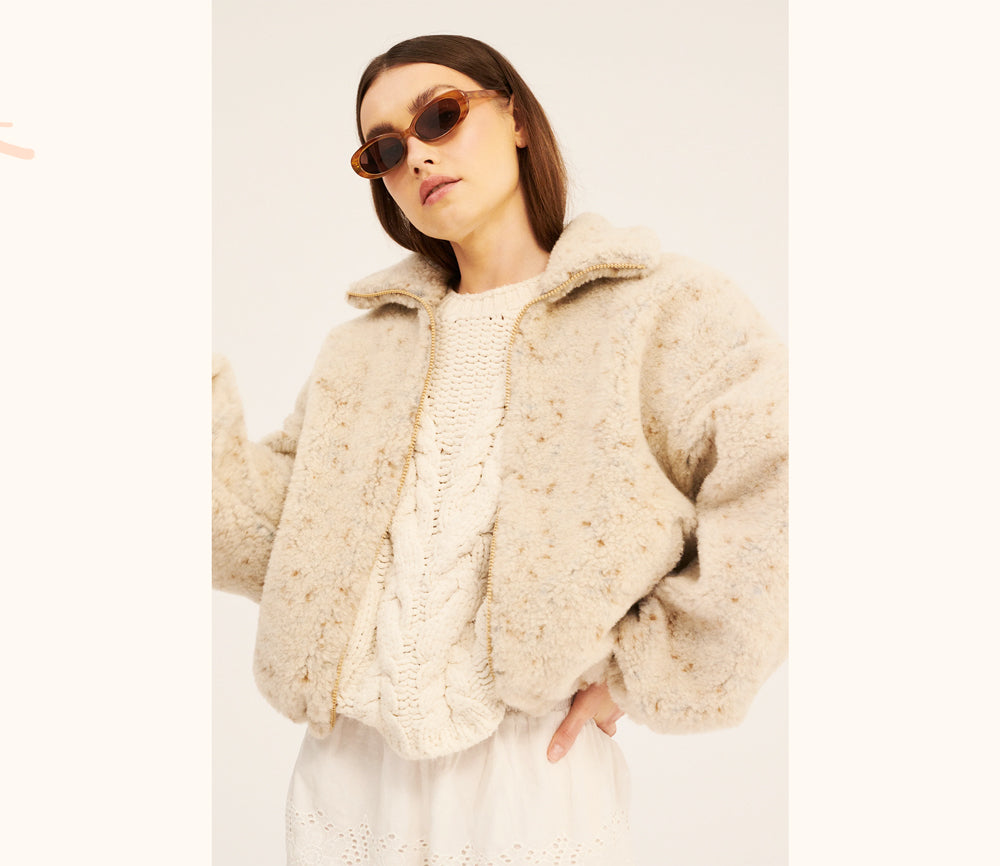 Alwero - Jacke BLANCS, Oversize, BEIGE MULTIDOTS, Biowolle