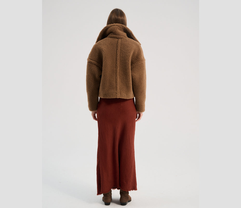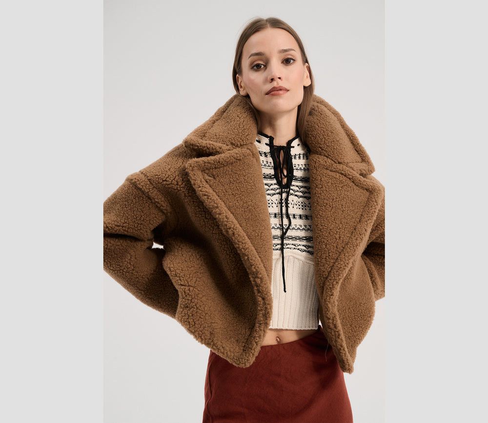 Alwero - Jacke "TEDDY SHORT" Adult, Teddy Brown, Biowolle Ultra Light