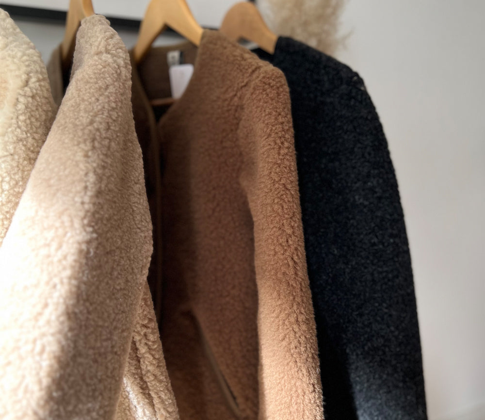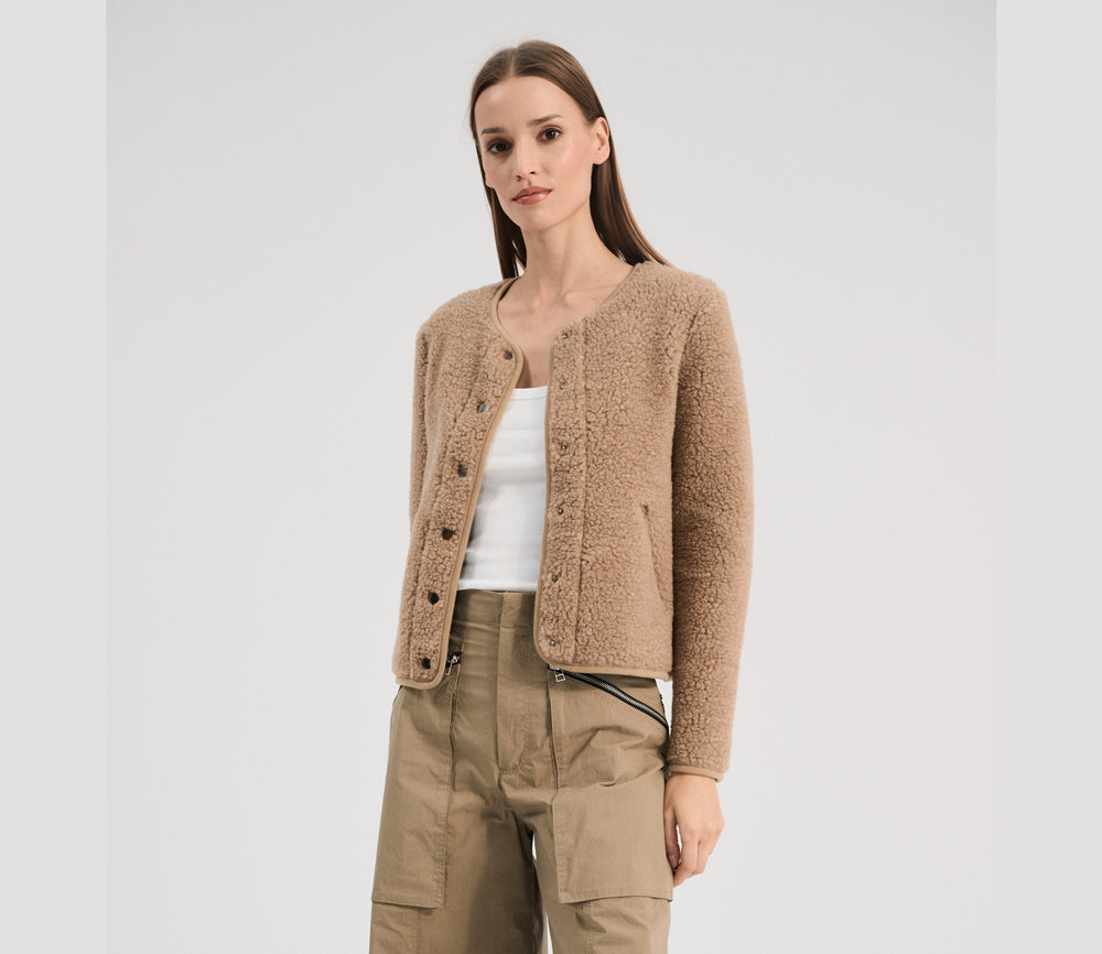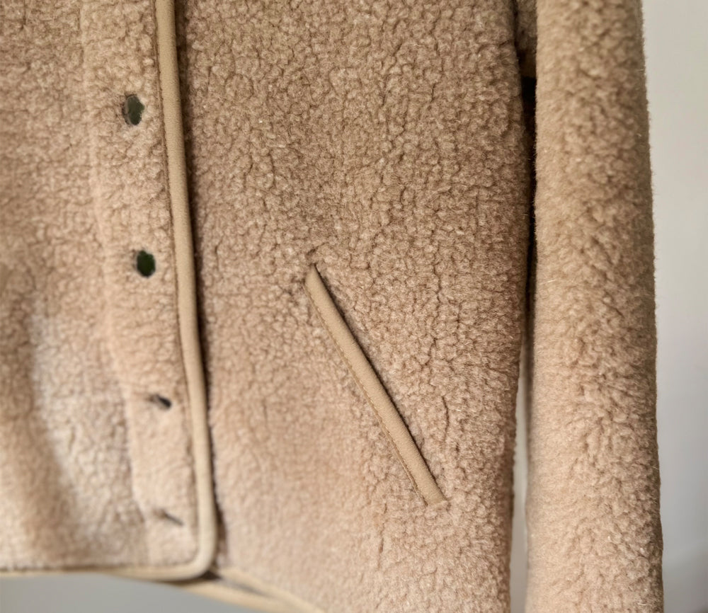 - ULTRALEICHTE WOLLE 100 % Wolle in einem Fleece mit Schaffellstruktur und einer sehr leichten Formel. Der Stoff zeichnet sich durch außergewöhnliche Weichheit und Elastizität aus, wodurch er uns sanft umhüllt. Charakteristisch für dieses Material ist seine schwarze Basis, die die Farbe des verwendeten Wollvlieses intensiv zur Geltung bringt.