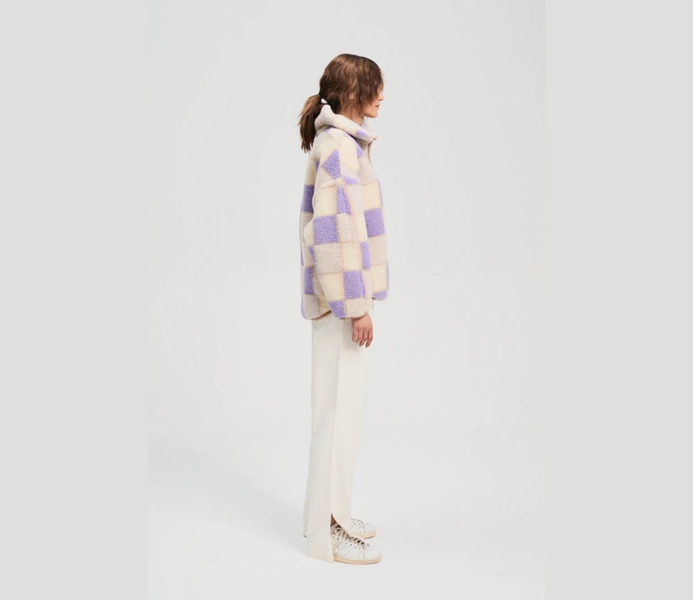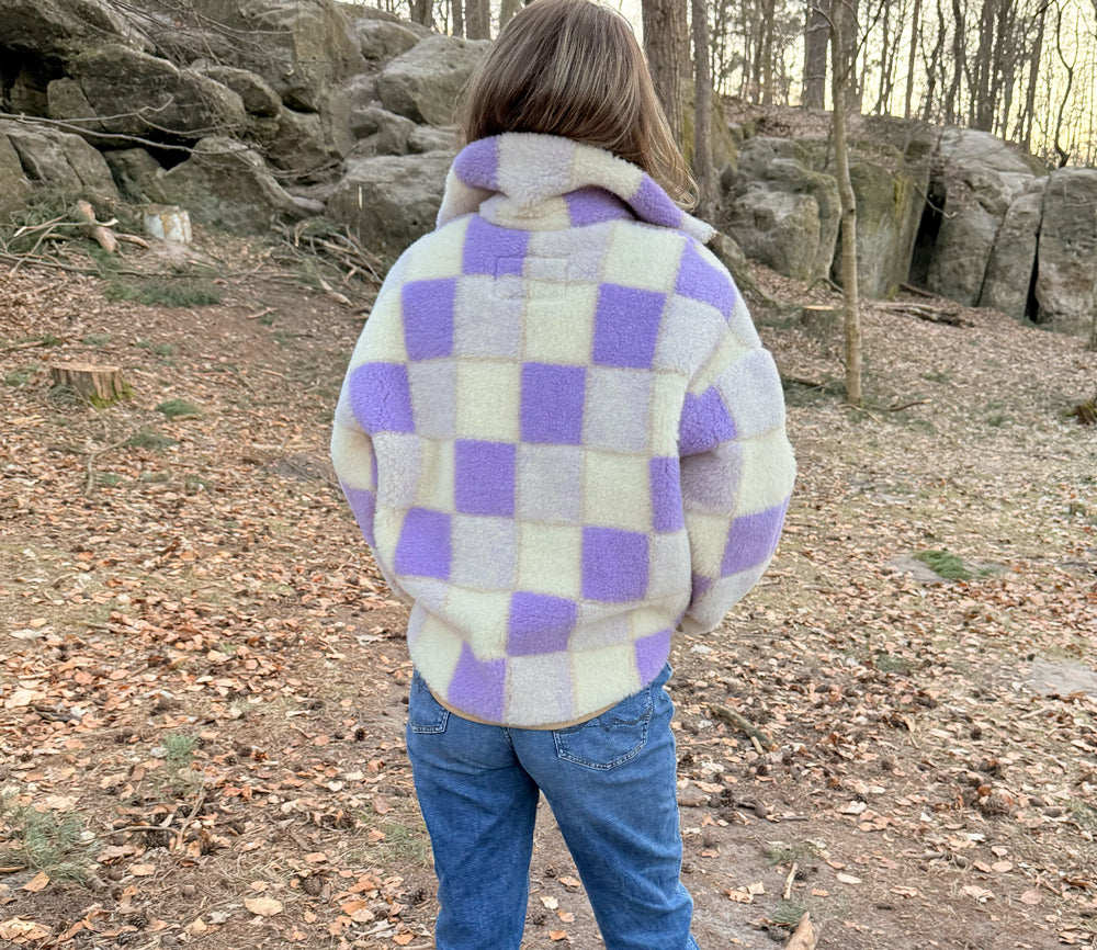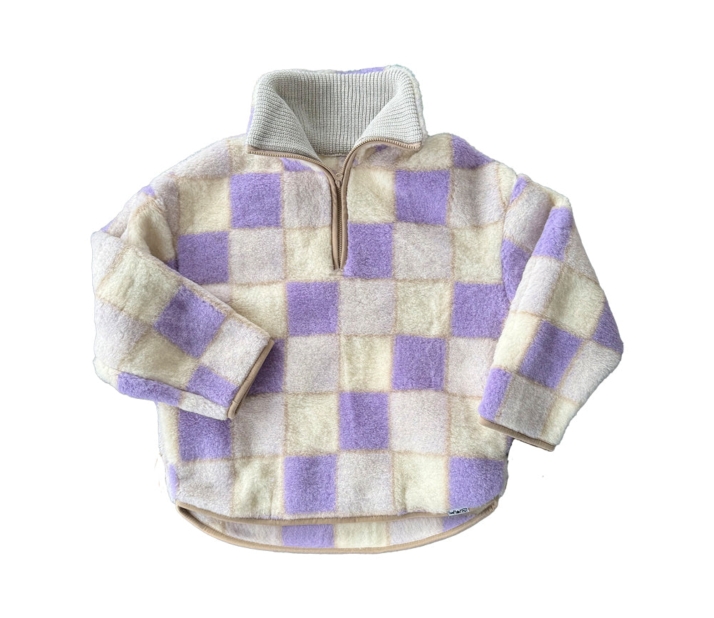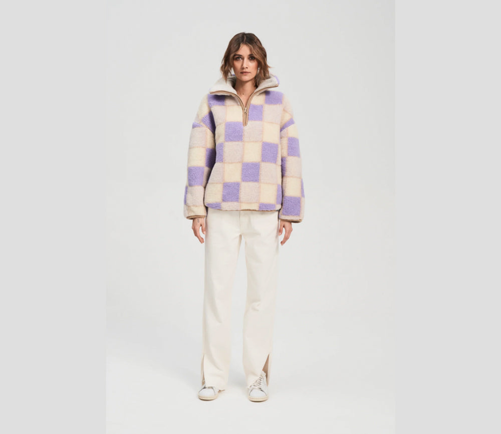 Alwero - Sweater BEL, Oversize, LILA CHECKERED, Biowolle, LIMITED EDITION